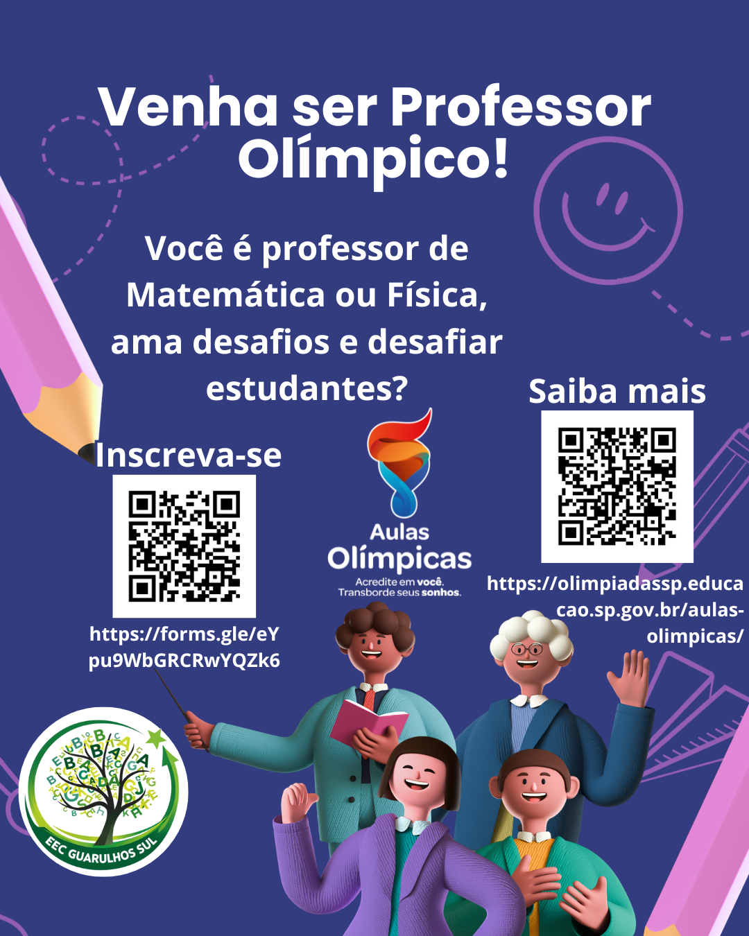 A Unidade Regional de Ensino Guarulhos Sul, com fundamento no disposto na Resolução SEDUC n° 150, de 27 de novembro de 2025, torna público o edital para a seleção e a atribuição de aulas para docentes para atuação no Projeto de Olimpíadas Científicas – Escolas Olímpicas.