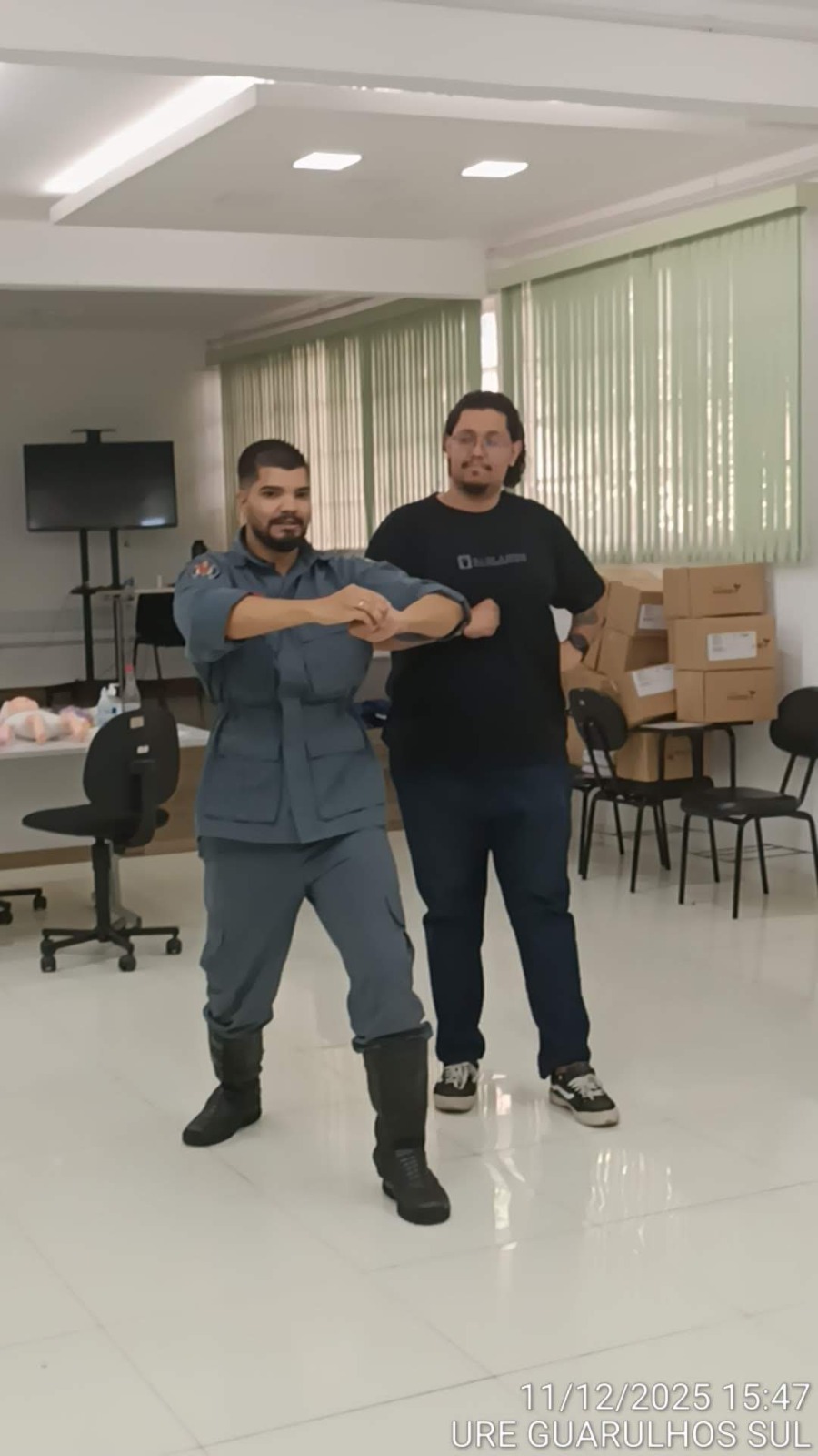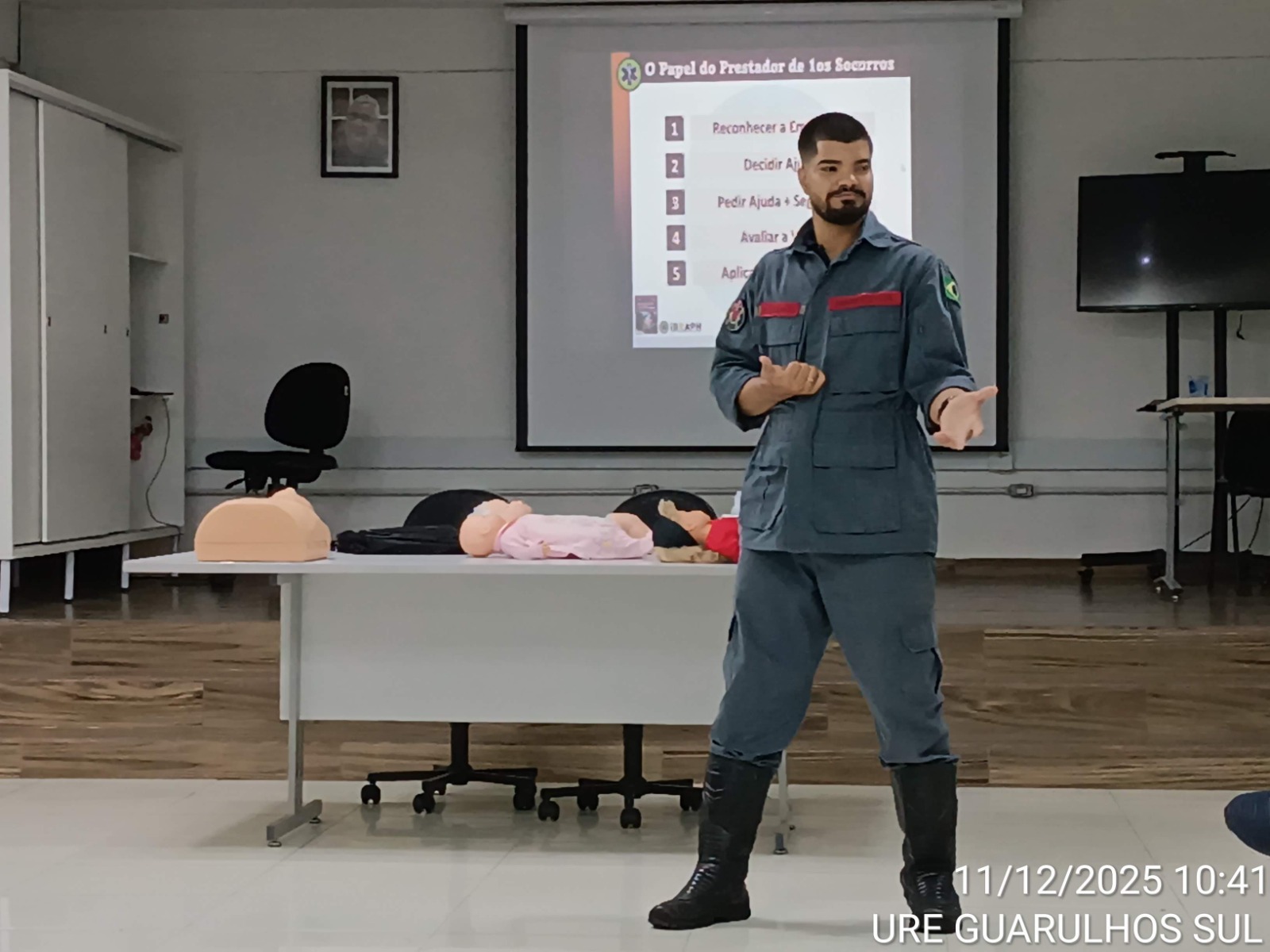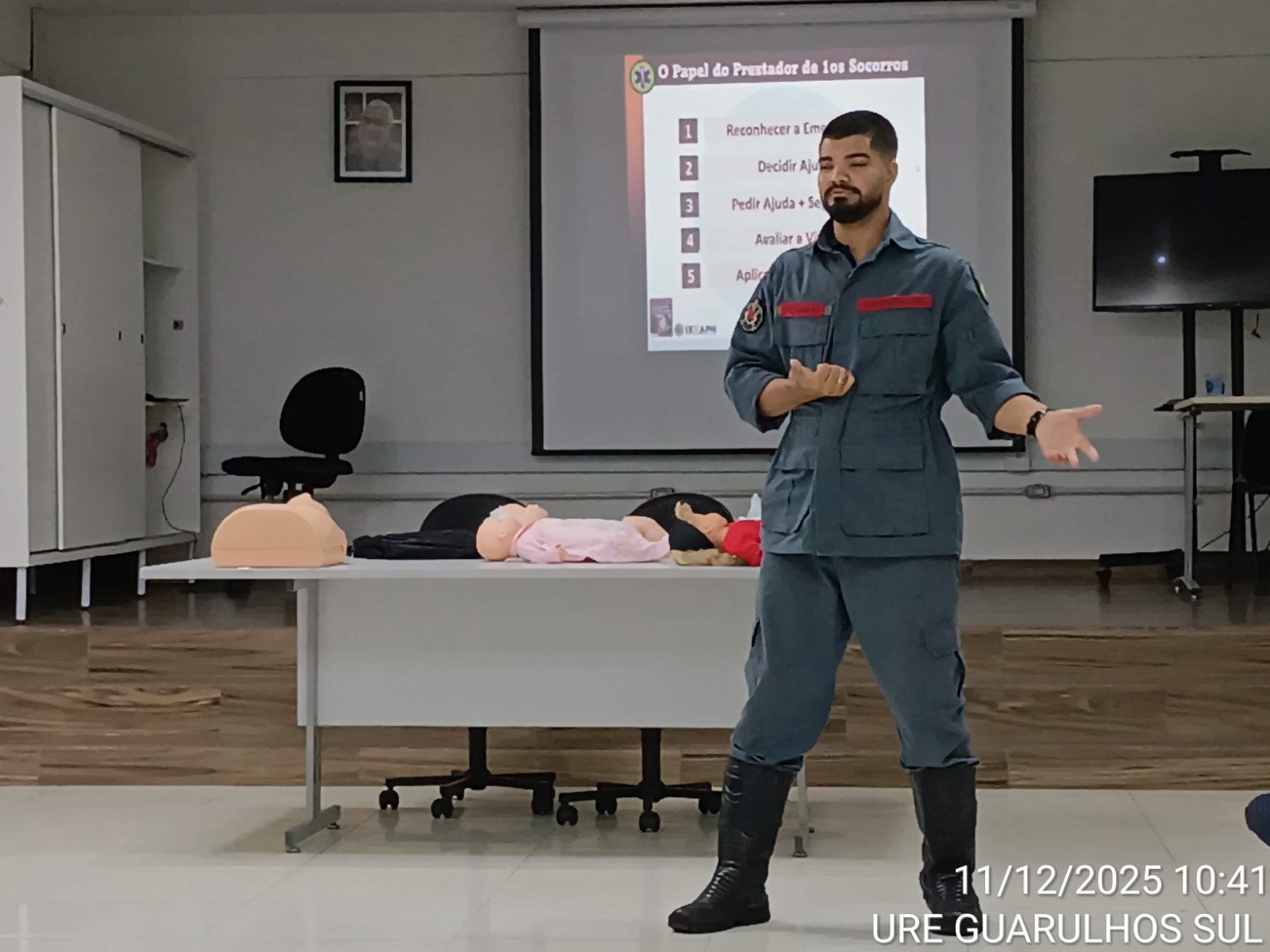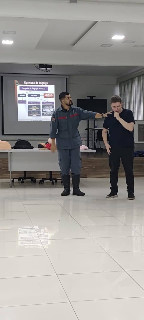 Os participantes puderam tirar dúvidas e acompanhar demonstrações práticas, reforçando a importância de manter a calma e seguir protocolos adequados em momentos críticos.