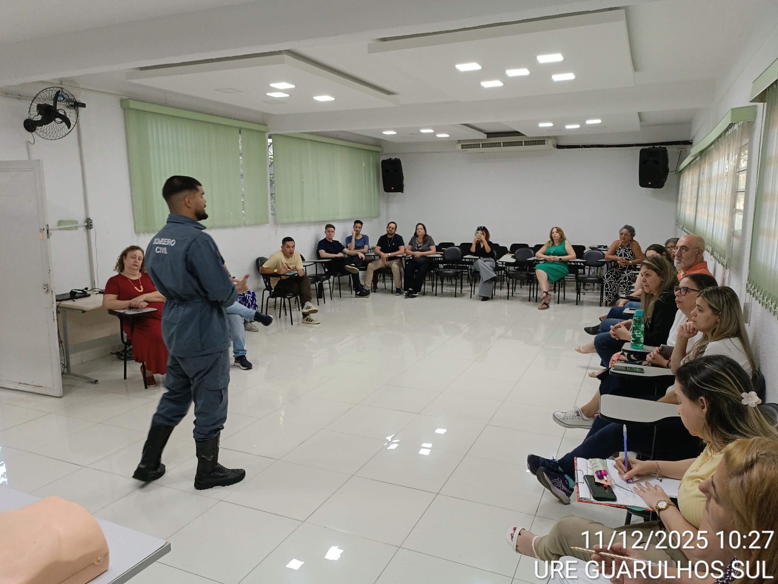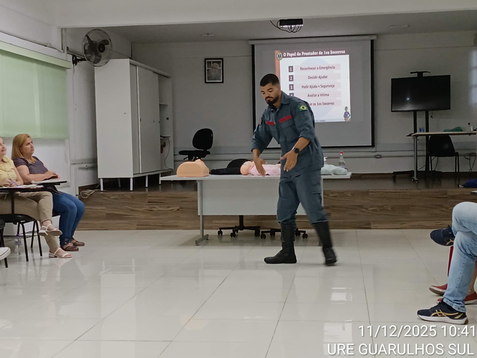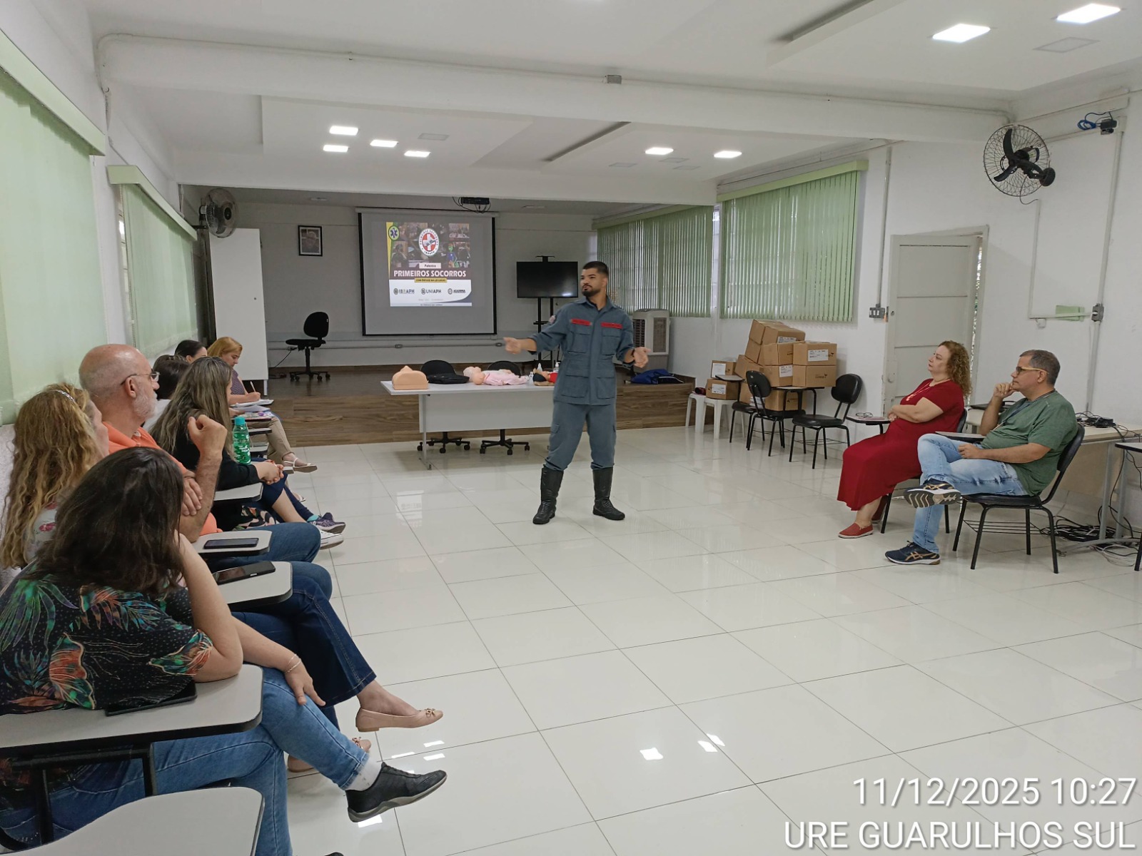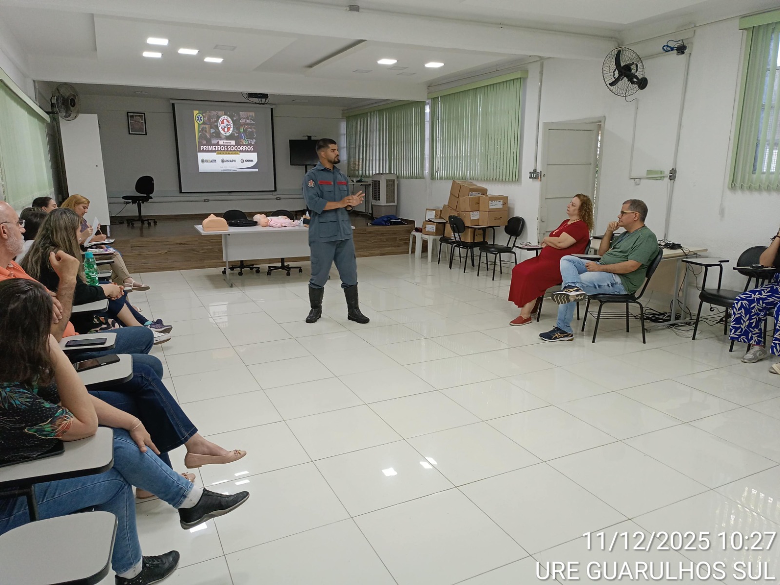 No ultimo dia 11/12. Foi realizado na URE Guarulhos Sul uma palestra sobre Primeiros Socorros/Lei Lucas. O evento contou com a presença do Bombeiro Civil Arão Gama.