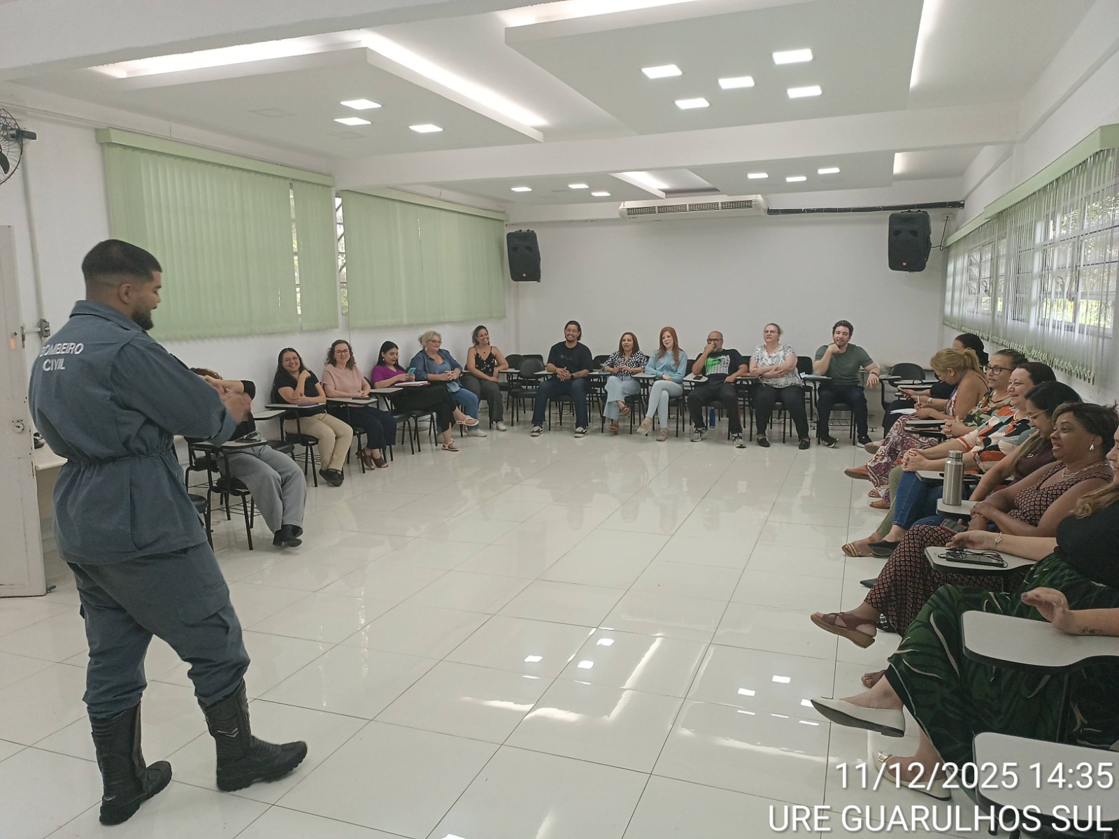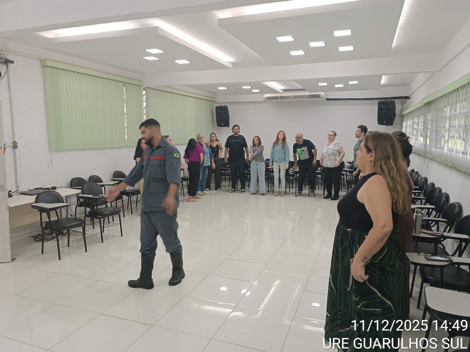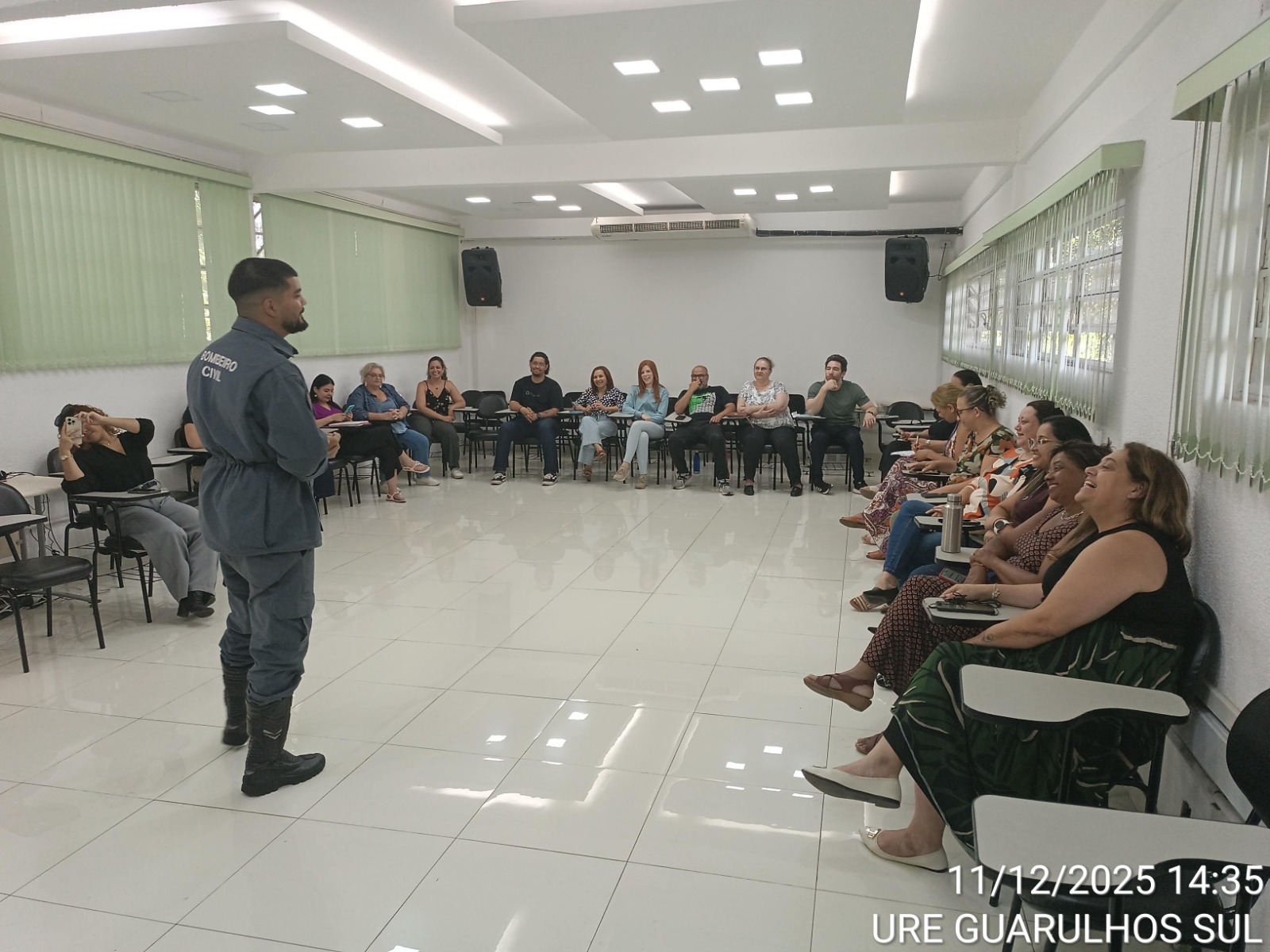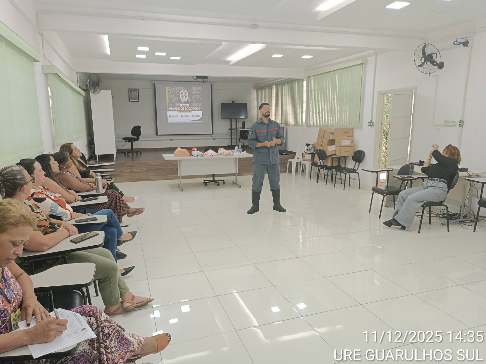 No ultimo dia 11/12. Foi realizado na URE Guarulhos Sul uma palestra sobre Primeiros Socorros/Lei Lucas. O evento contou com a presença do Bombeiro Civil Arão Gama.