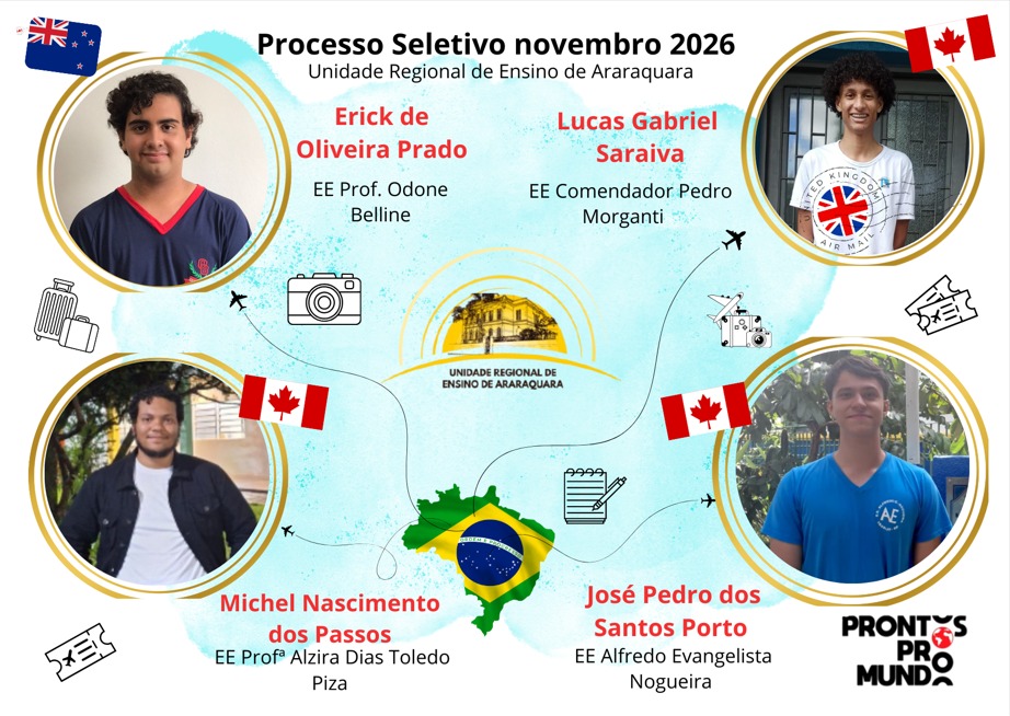 O programa Prontos pro Mundo leva 1.000 estudantes de todo o estado, por ano, para um intercâmbio de três meses nos seguintes países: Austrália, Canadá, Irlanda e Nova Zelândia. São 500 selecionados por semestre. Os estudantes chamados são divididos em duas listas: por município e classificação geral. Inicialmente, o programa classifica um estudante representante de cada município paulista. As vagas das cidades sem alunos aptos a concorrer pelo intercâmbio são destinadas à distribuição pelos principais critérios do programa (nota do Saresp e nota da prova do Prontos pro Mundo) por ordem de classificação.